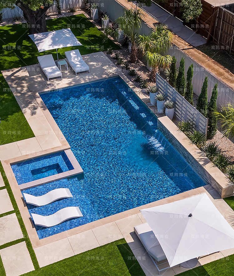 水池以白色瓷砖显得更加清澈明亮,可以营造出一种清新的水景效果除了白色,还可以使用淡蓝色淡绿色和淡灰色,来营造出更加自然的水景效果。
